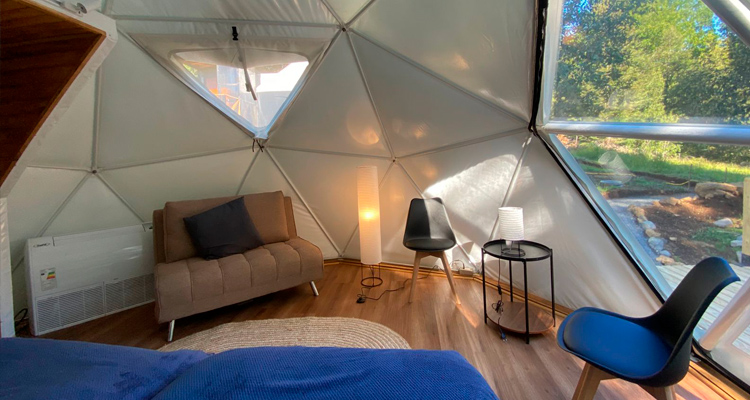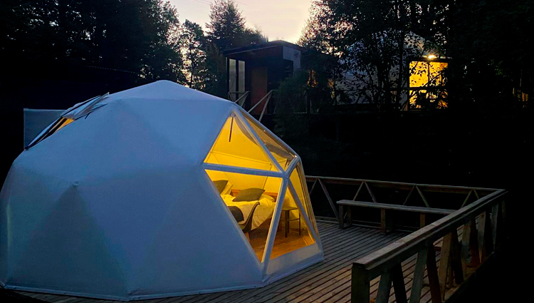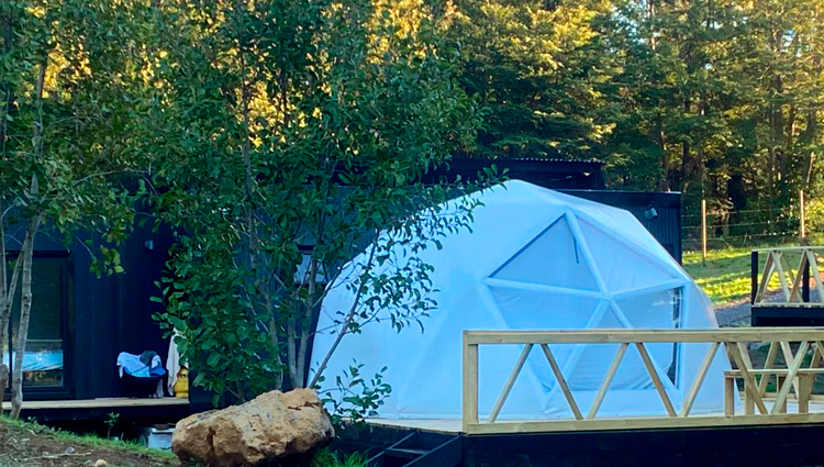 Domos con cocina y baño independientes, rodeados por coihues, robles y raulies entre otros.