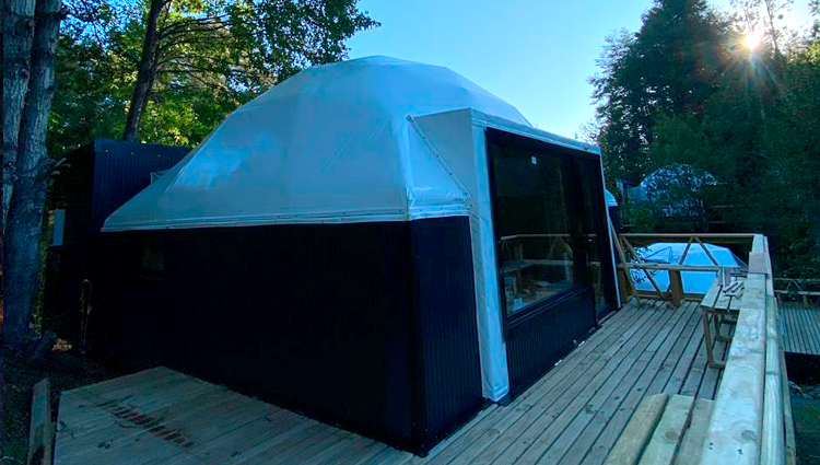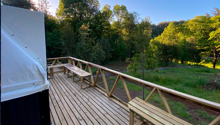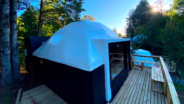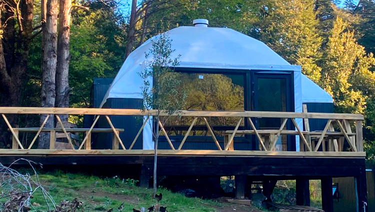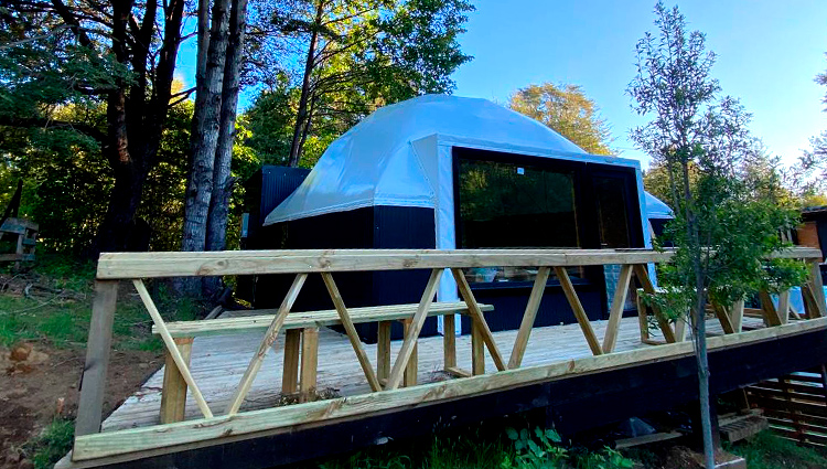 Domos con cocina y baño independientes, rodeados por coihues, robles y raulies entre otros.