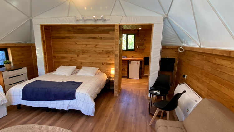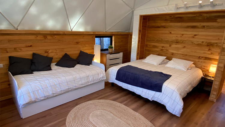 Cada domo cuenta con una cómoda cama de dos plazas que, según tus necesidades, puede separarse para convertirse en dos camas individuales.