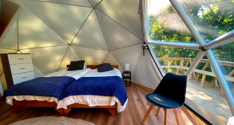 Cada domo cuenta con una cómoda cama de dos plazas que, según tus necesidades, puede separarse para convertirse en dos camas individuales.